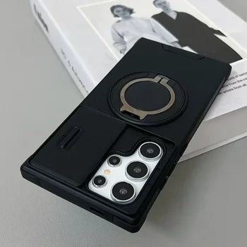 360° Rotating Ring Holder Magnetic Hinge Protection Case for Samsung Galaxy Z Flip 7 with Tempered Glass Film Cover
