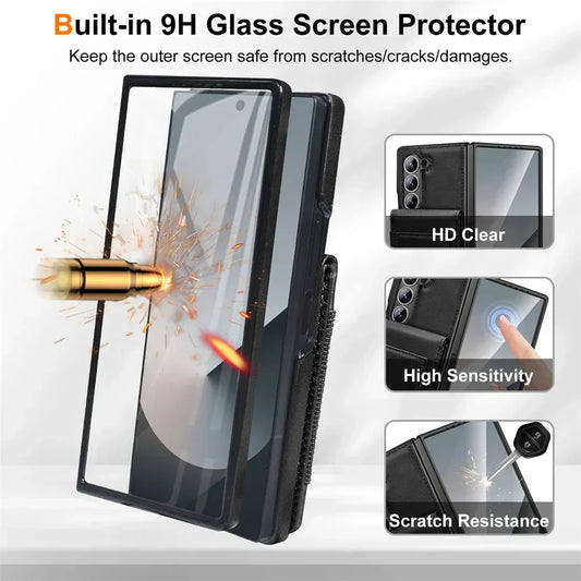Luxury Leather & Tempered Glass Flip Stand Case For Galaxy Z Fold